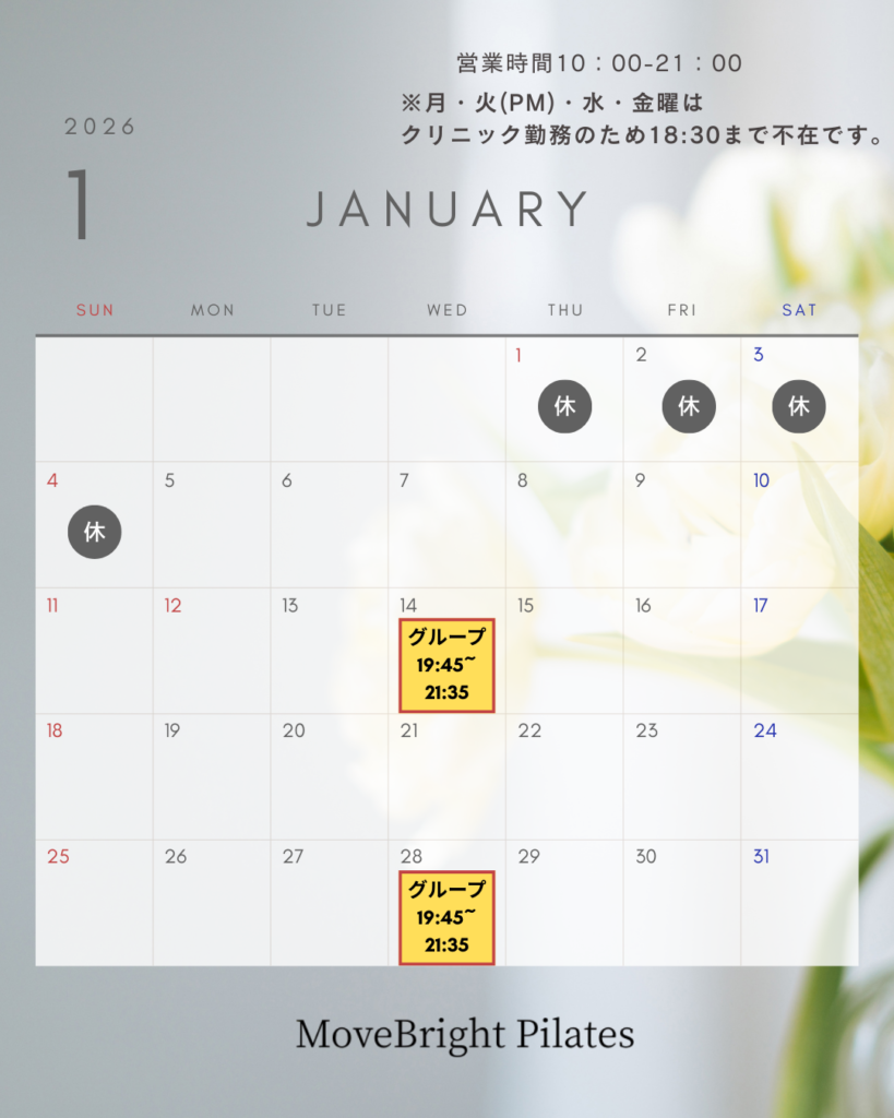 いつもMoveBright Pilatesをご利用いただきありがとうございます!